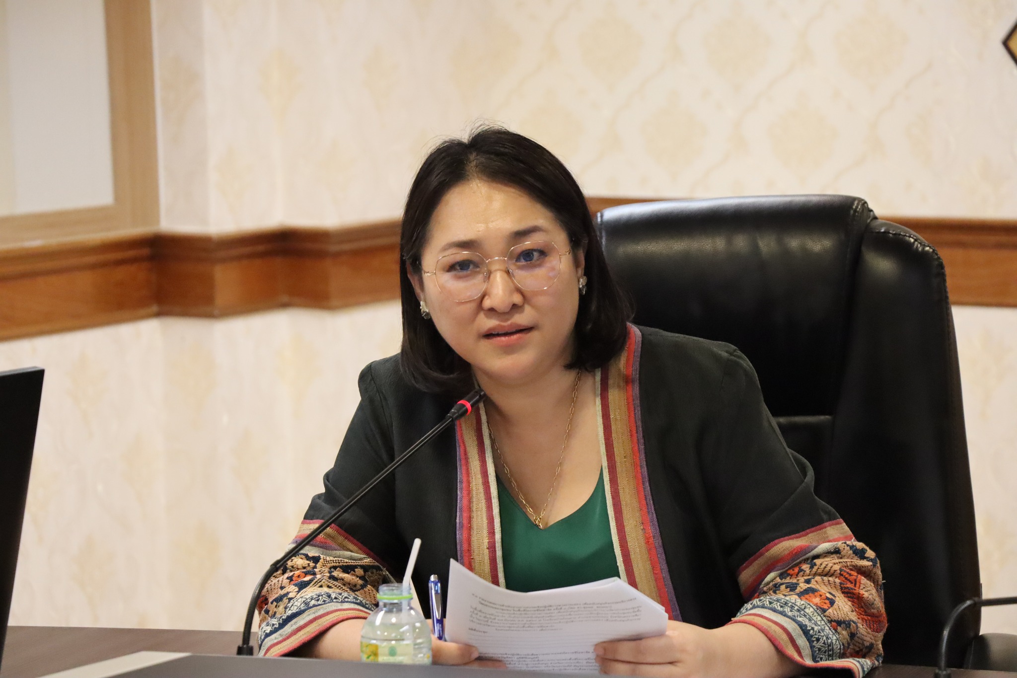 Today (March 18, 2026) at 3:00 PM, at the Rattanapian Meeting Room, 2nd floor, Chalermprakiat Building (Building 9), Nakhon Ratchasima Rajabhat University, Assistant Professor Rekha Intrakamhaeng, Assistant to the President for Student Development and General Affairs, and head of the project, chaired the first meeting of the committee for the project to strengthen holistic cooperation among all sectors according to UNESCO guidelines for the Korat Geopark area of Nakhon Ratchasima Rajabhat University.